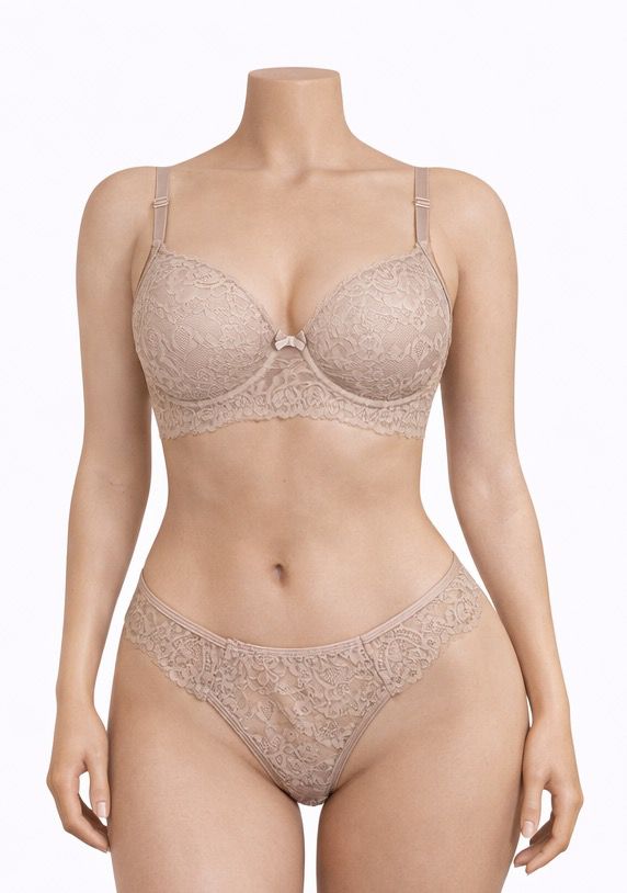 Conjunto de lingerie sofisticado e confortável, ideal para valorizar a silhueta com charme e delicadeza.